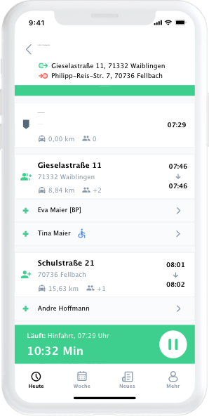 Senden Sie Tourenpläne und Informationen zu Fahrten und Fahrgästen digital auf die Endgeräte Ihres Fahr- und Begleitpersonals für iOS und Android.