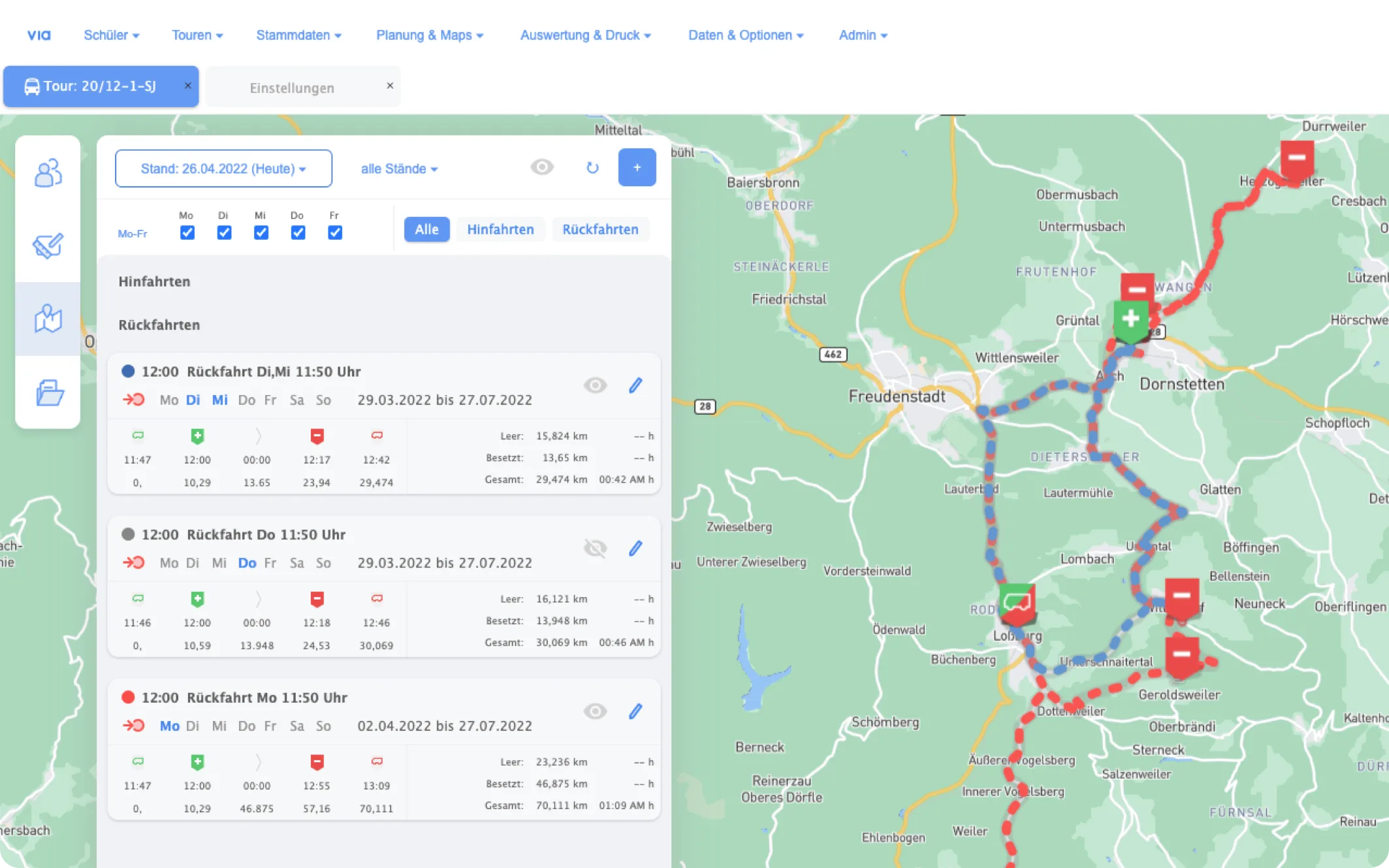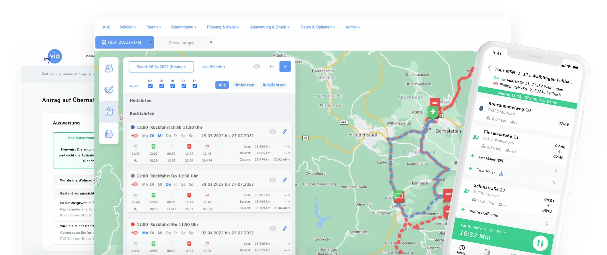 Das VIA-Schülerbeförderungsprogramm ist in der täglichen Praxis eine unersetzliche Hilfe. Die komplexe Bearbeitung von der Planung, Ausschreibung bis zur Rechnungs- abwicklung gewährleistet die Effizienz und Stabilität für eine zuverlässige Schülerbeförderung.
