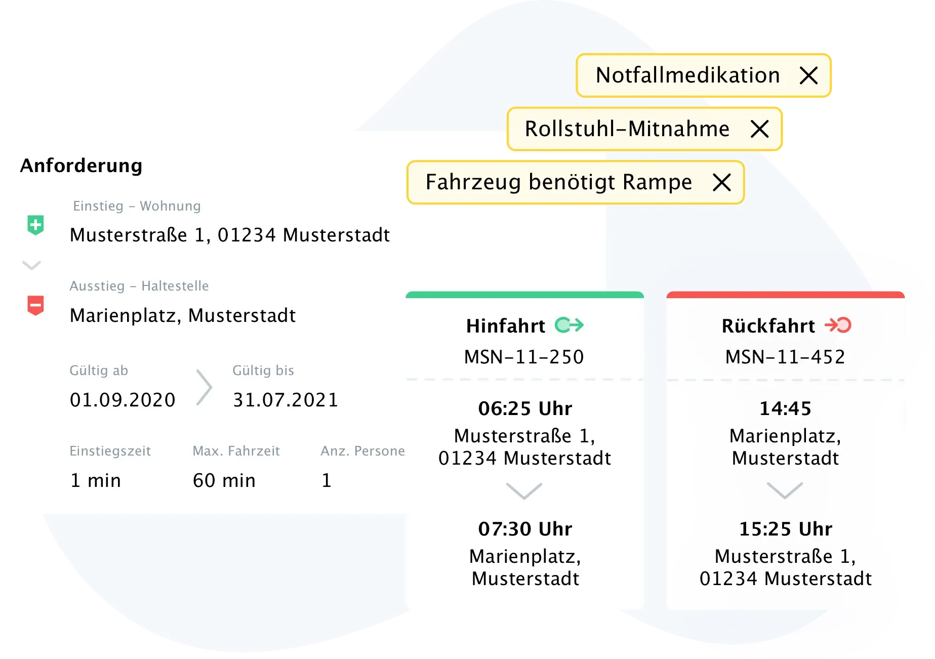 Lassen Sie sich auf Knopfdruck aus den vielen personenindividuellen Fahrtanforderungen