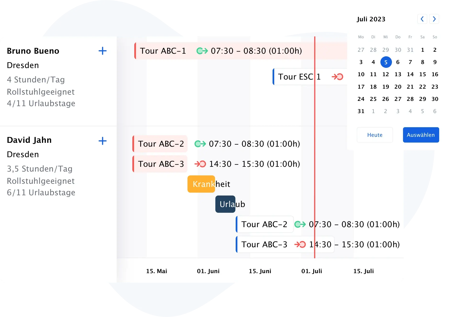 Behalten Sie den Überblick über Ihr verfügbares Fahrpersonal und vermeiden Sie teure Leerlaufzeiten